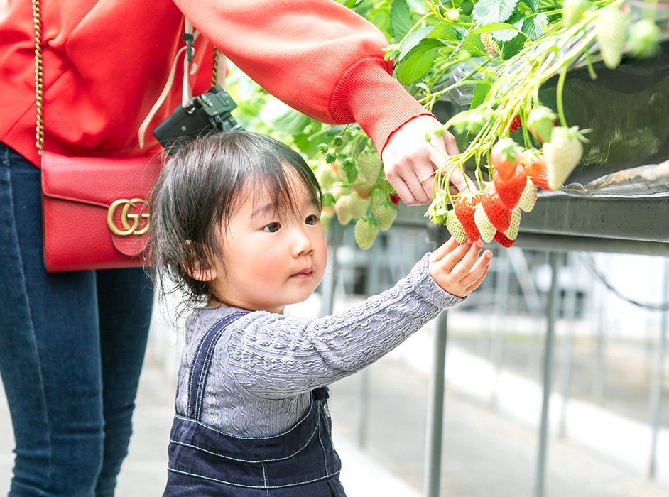 当施設で大人気のいちご狩りをはじめ、 ぶどうなどの収穫体験を季節に応じて開催しています。