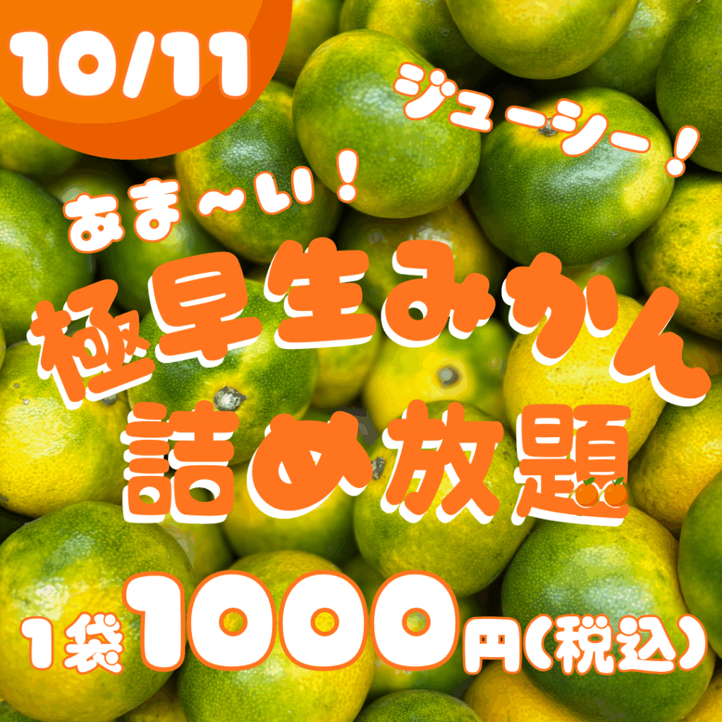 ロードサイドマーケットにて10月11日(土)、人気の詰め放題企画「みかんの詰め放題」を開催します!