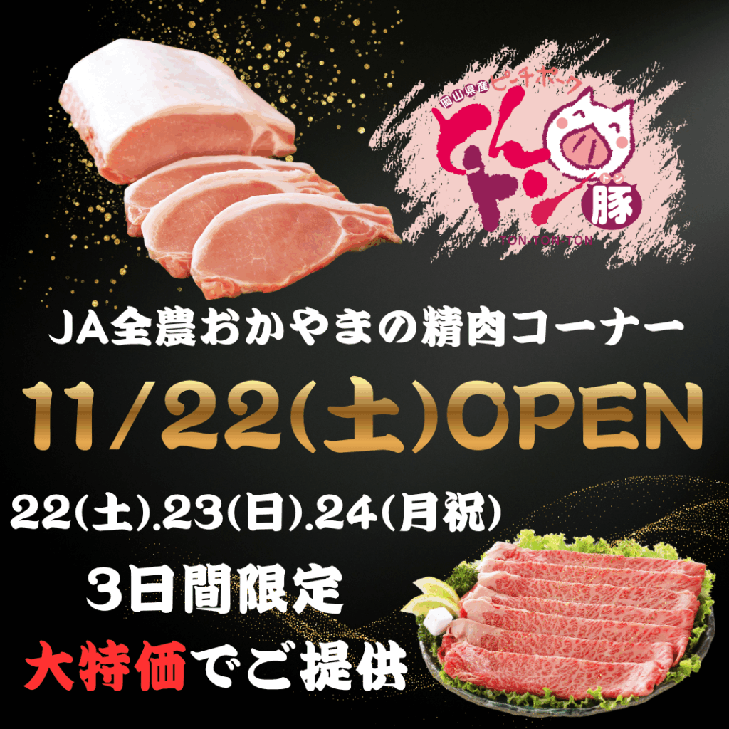 11月22日にサウスヴィレッジロードサイドマーケットにて、JA全農おかやまが精肉コーナーをOPEN!