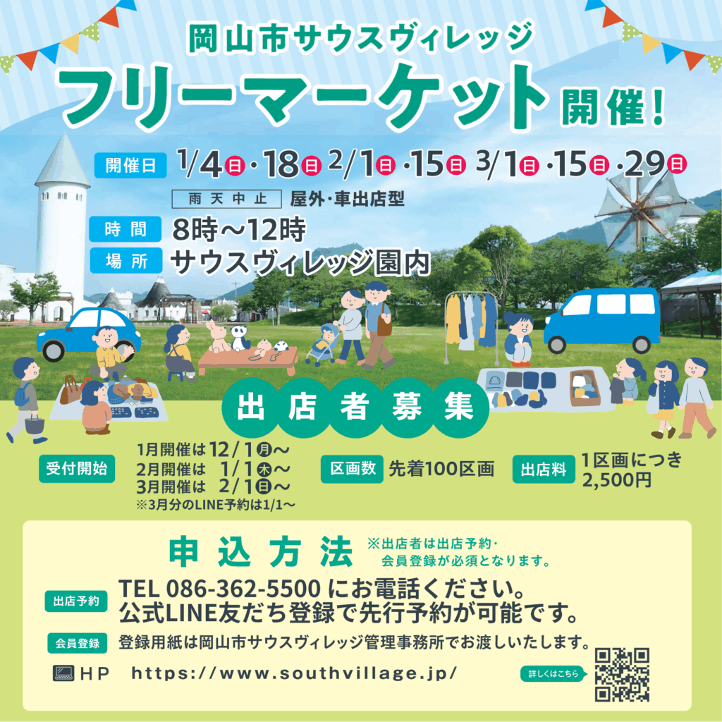 出店をご希望の方は、会員規約をご確認のうえ、サウスヴィレッジ管理事務所へお越しの上、出店会員登録後、 お電話にてご予約ください。